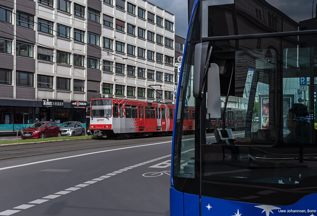 denn genau in dem Augenblick, als sich Tribwagen 9372 (Typ B100S) der Linie 66 von Siegburg, am 23. April 2024 um 17:12 Uhr, auf der